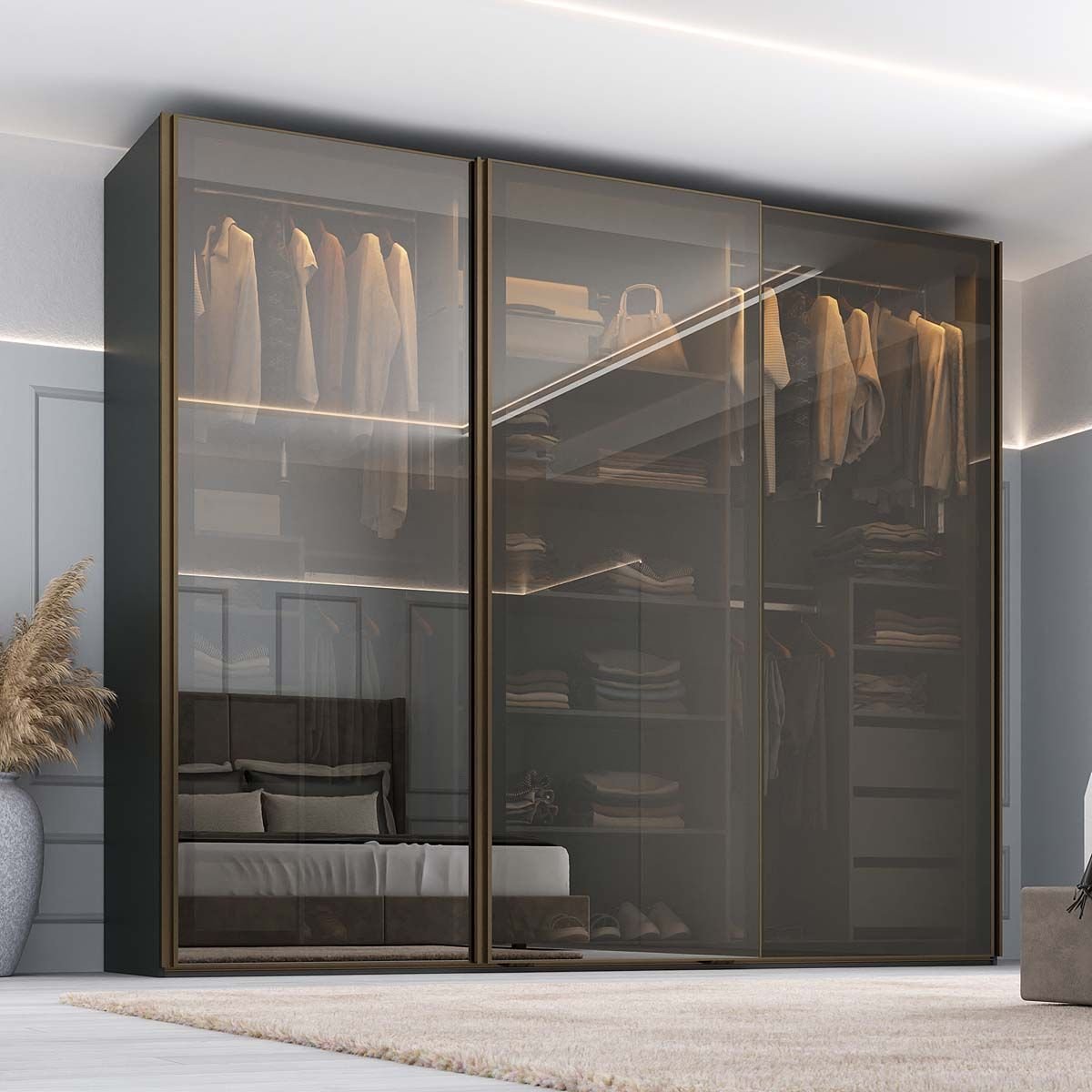 Guarda Roupa Bari Mdf 273x230cm 3 Portas Reflecta com Led Grafitto 1211