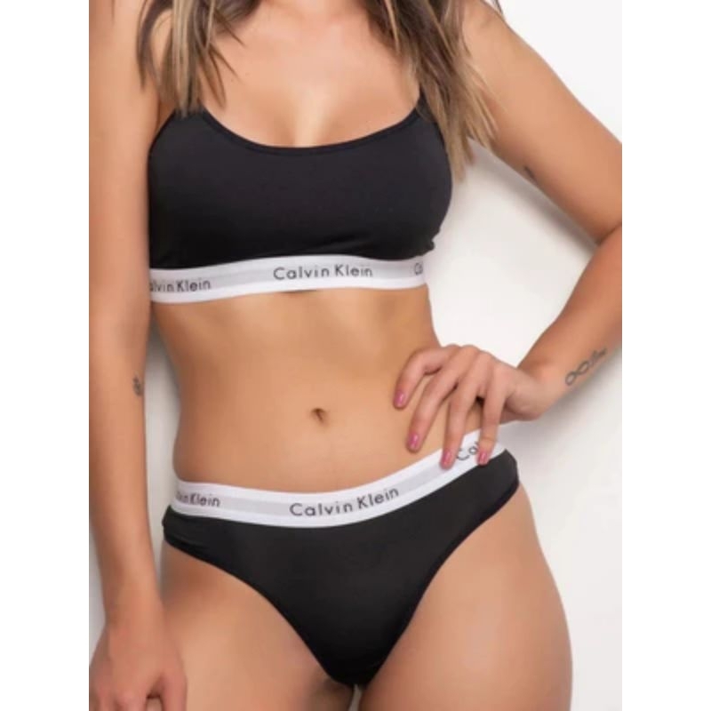 Conjunto preto feminino lingerie blogueira microfibra top e calcinha