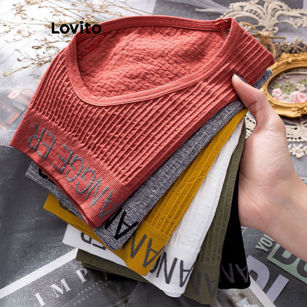 Lovito Calcinha Casual Com Letras Para Mulheres LNA23011 (Cinza/Branco/Preto)