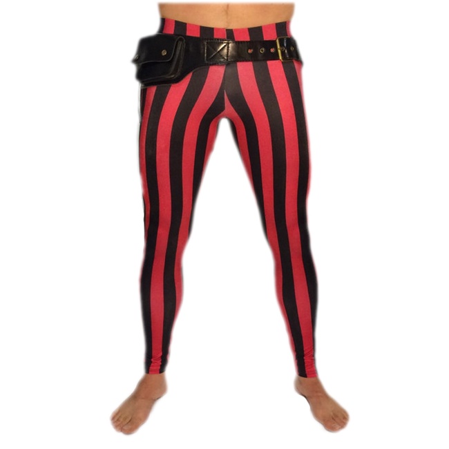 Calça Legging Masculina Megging Esportiva Listrada Vermelha e Preta Metal 80