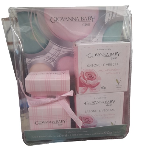 Kit Mini Necessaire Classic Rosa Memoria Afetiva Mini Colonia 20mL + 2 Sabonete Barra 90g Cada Giovanna Baby