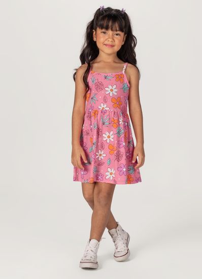Vestido Infantil Menina Em Malha De Flores Brandili