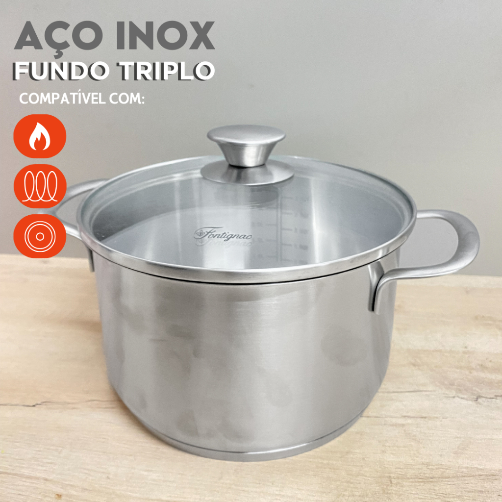 Panela de inox com Tampa de vidro 3,7 Litros - Caçarola Fundo Triplo