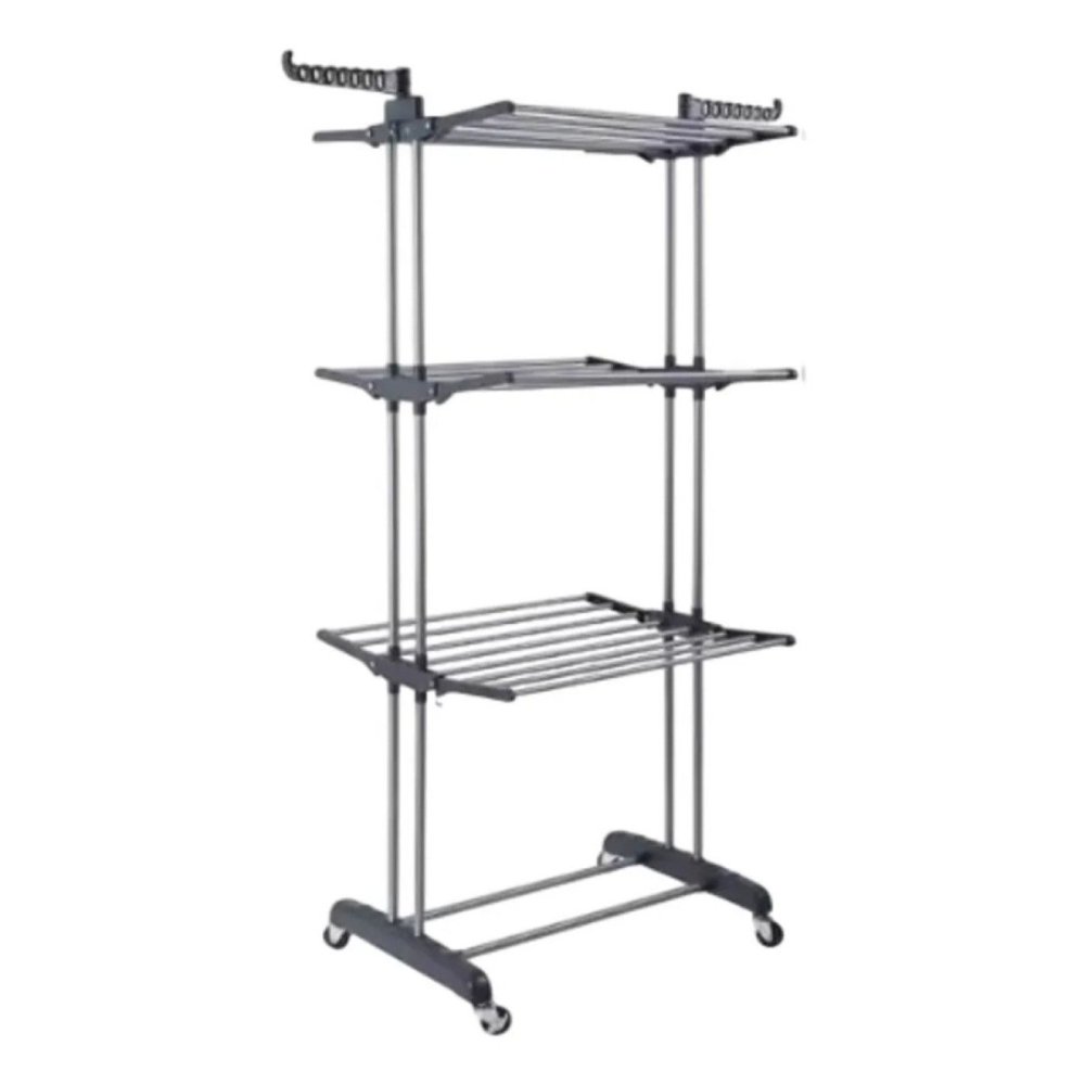Varal de Chão Vertical 3 Andares Dobrável Inox 48kg com Rodinhas
