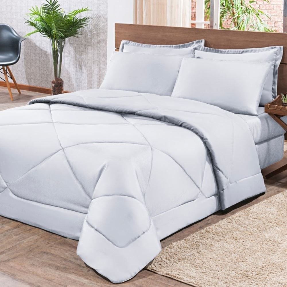 Kit Edredom + Jogo De Lençol Aconchego Look House Dupla Face Casal King 06 Peças - Branco - 80% Algodão, 20% Poliéster