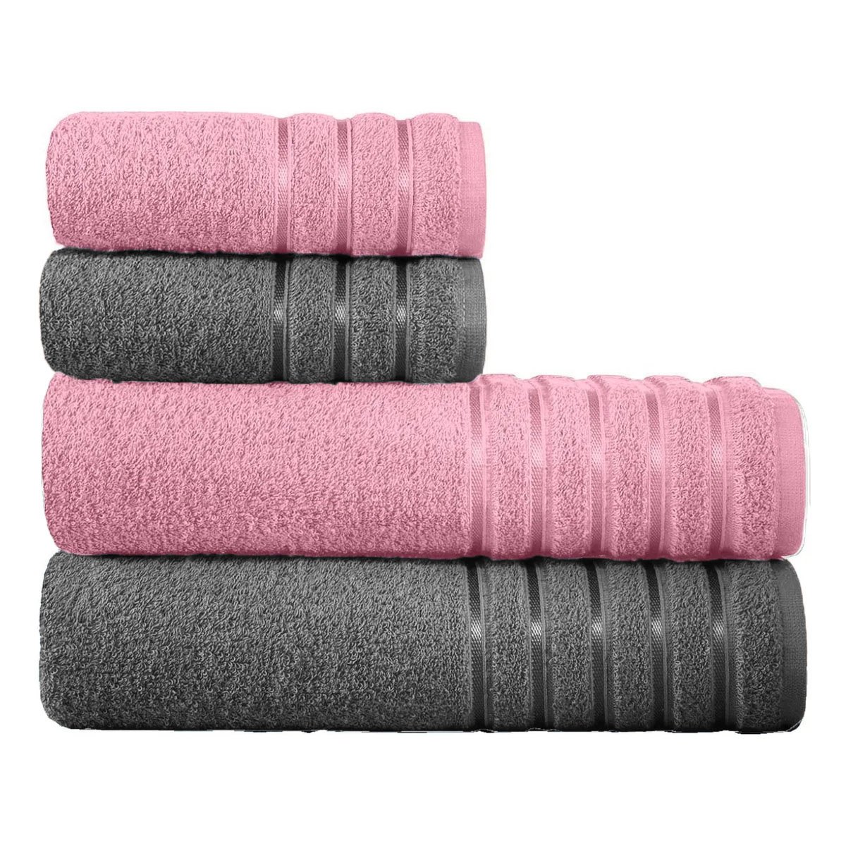 Jogo de Toalha 4 Peças Felpuda Comfort 100% Algodão Teka Cor Cinza / Rosa