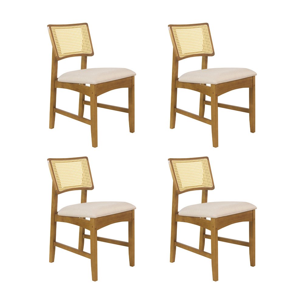 Cadeira de Jantar Estofada Lunna Amêndoa e Linho Off White - WP 59452