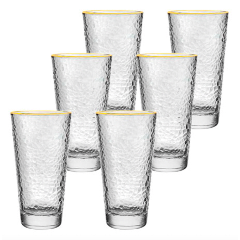 Jogo De Copos Vidro 6 peças Hammers Gold 320 ml - Hauskraft Premium