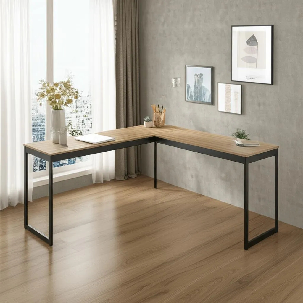 Mesa Em L Escritório Diretor Madeira e Metal Apoio de Canto 150x150
