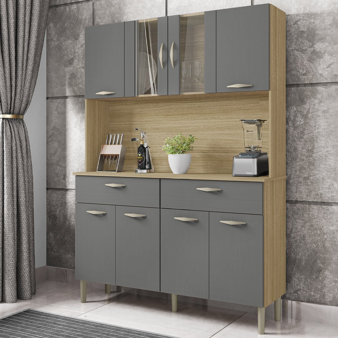 Armário de Cozinha Compacta 8 Portas 2 Gavetas Pan - Freijó/gris