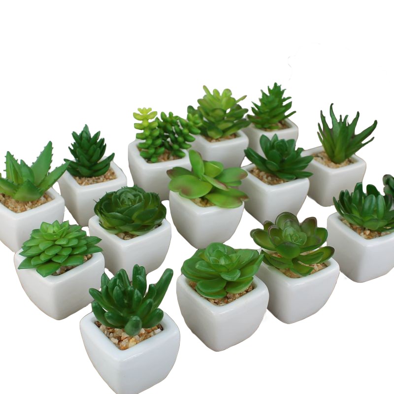Plantas Mini Suculentas e Mini Cactus Artificiais Vaso Cerâmica Branco - Sortidos