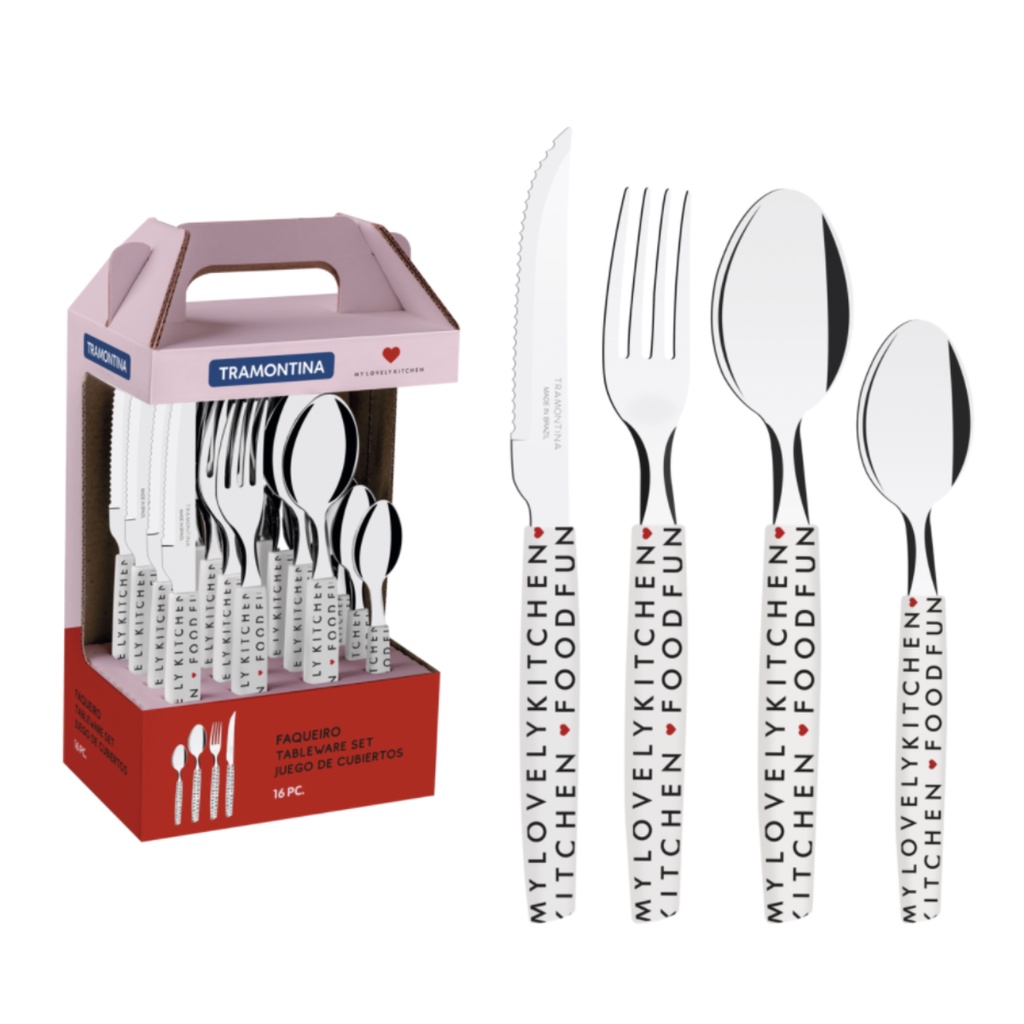 Faqueiro Tramontina My Lovely Kitchen com Lâminas em Aço Inox e Cabos de Polipropileno Branco 16 Peças