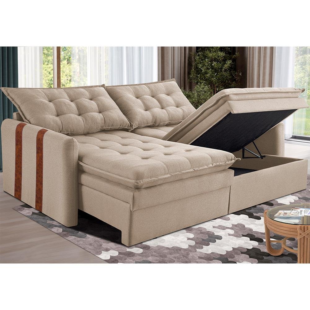 Sofá Baú sem Caixa Retrátil 2,00m Softgel Petit Linho Bege Claro Cama Inbox