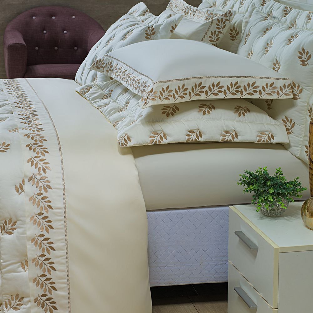 Jogo Cama Lençol Garland Casal Bordado 100% Algodão Acetinado 400 Fios 4 Peças - Bege