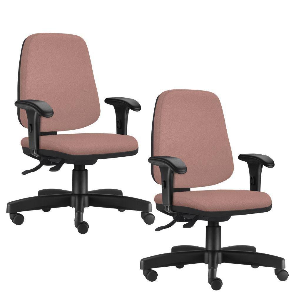 Kit 02 Cadeiras Giratória Job L02 Executiva Ergonômica Escritório Suede Rosê - Lyam Decor