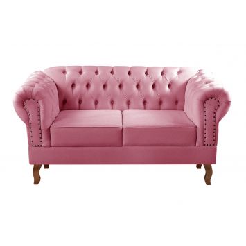 Sofá 2 Lugares Dom Pedro Chesterfield Capitonê Retrô - Suede Rosa