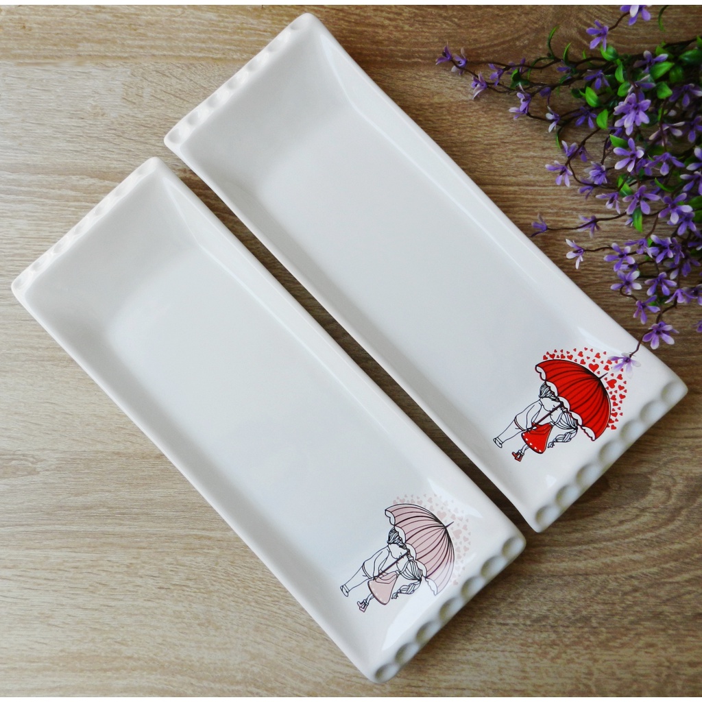 Travessa Retangular de Cerâmica Estampada Folhagem Vermelha 21cm