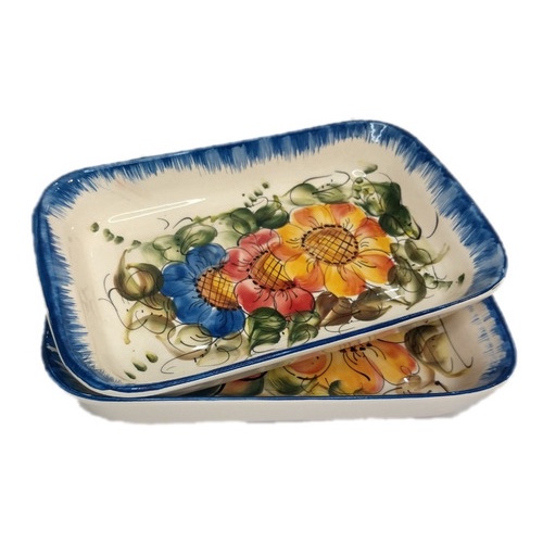 Par Tigela Travessa Retangular Em Porcelana Azul Floral