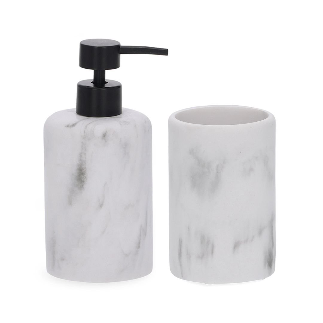 KIT COM PORTA-SABONETE LÍQUIDO E COPO EM POLIRRESINA BRANCO