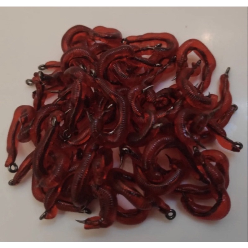 30 peças de Iscas Artificiais De Minhoca Aromatizada Com Anzol Para Tilápia + 2 ponteira inteligente