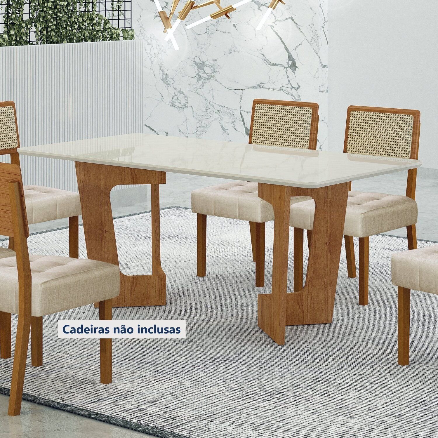 Mesa de Jantar Retangular 6 Lugares Tampo MDF Aries Móveis Lopas Imbuia Clean/off White