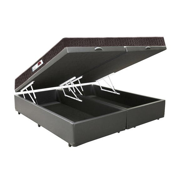 Cama Box Baú Queen Colchão Top Line Mola Bonnel + Box Bipartido Sintético Cinza Serra Negra 63x158x1