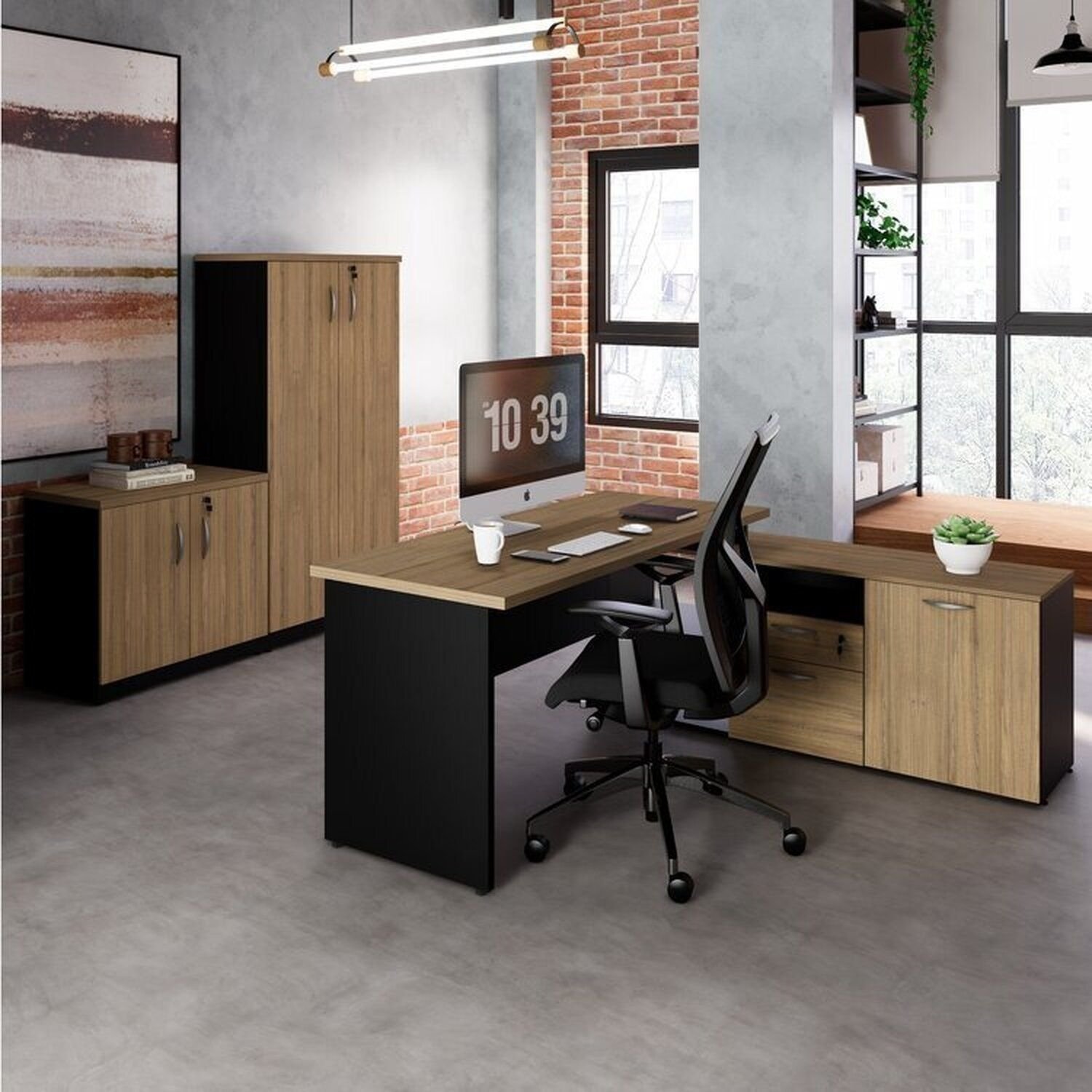 Conjunto para Escritório com Mesa Diretor em L, 1 Armário Alto e 1 Armário Baixo Espresso Móveis