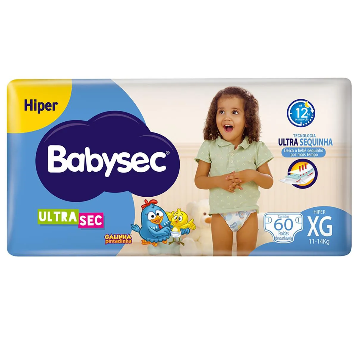 Fralda Babysec Ultrasec Hiper Galinha Pintadinha XG - 60 Unidades