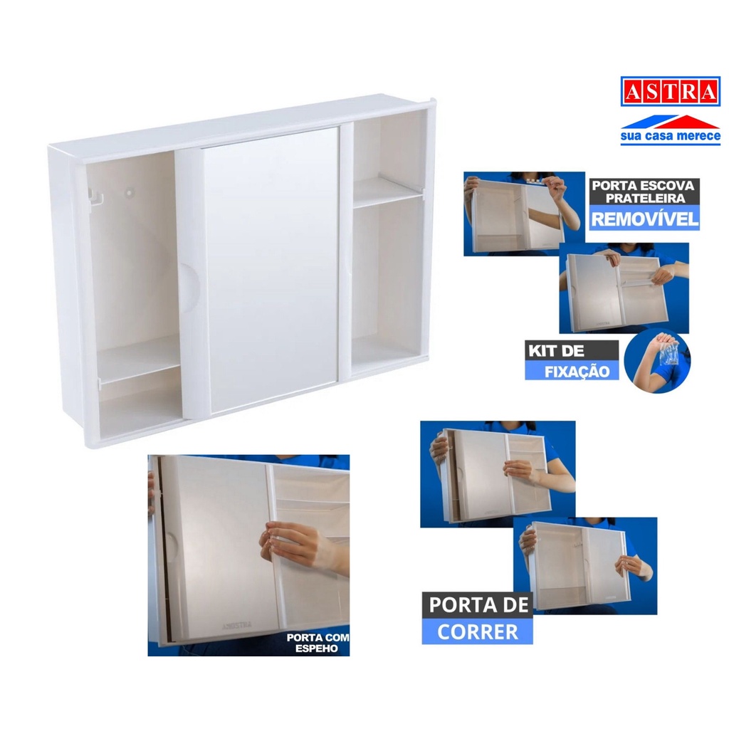 Armario Banheiro c/ Espelho - Branco - Porta Deslizante - 40,8cmx28,4cmx9,5cm - A21 - ASTRA
