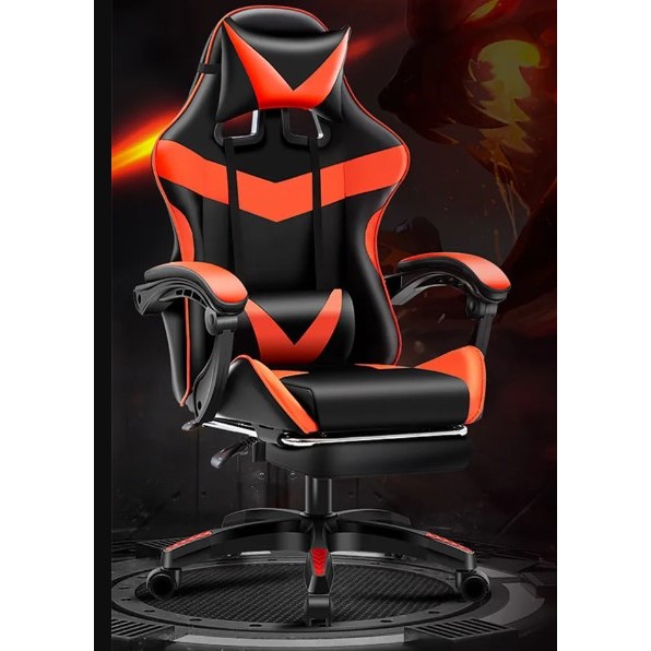 Cadeira Gamer Ergonômica Reclinável C Massageador Verm/Preta