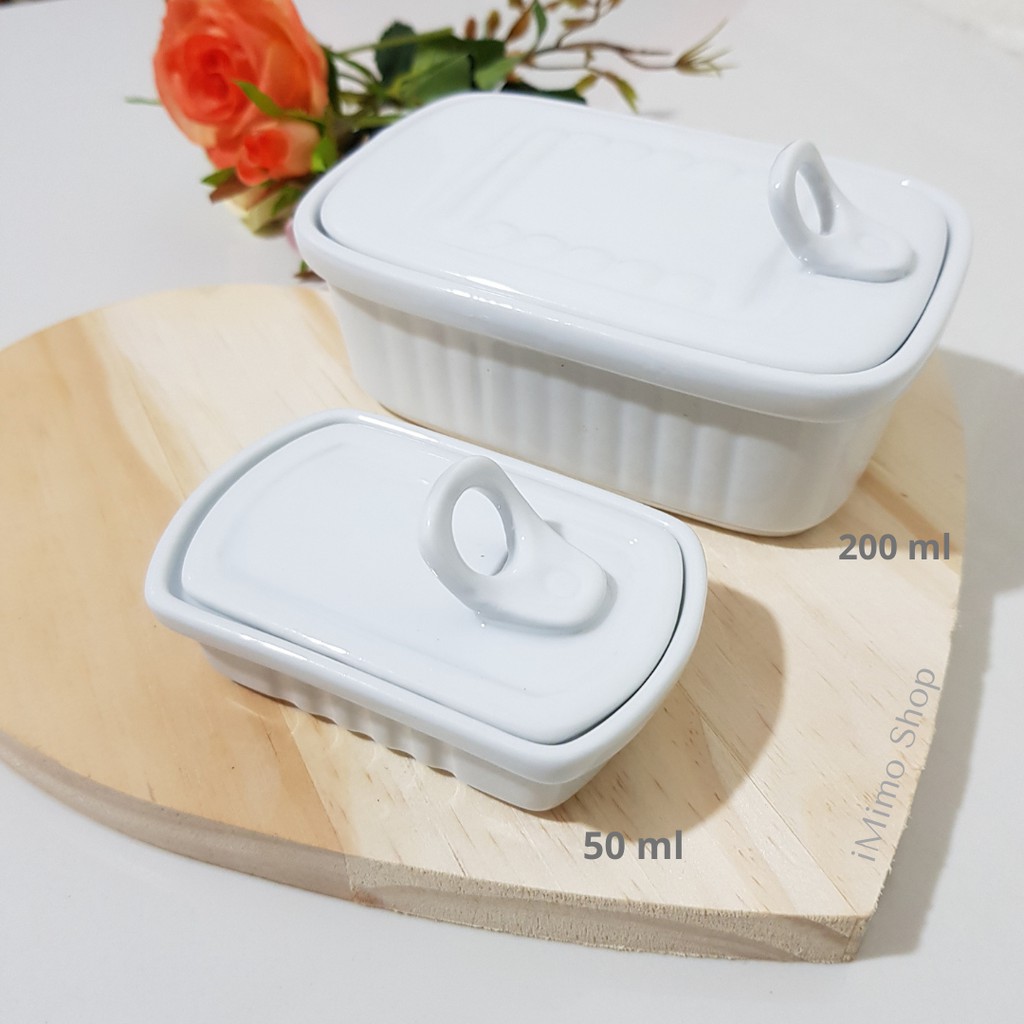 Pote Pequeno ou Grande com Tampa Formato Latinha de Sardinha para Molhos em Porcelana Mesa Posta. (Ler Descrição)
