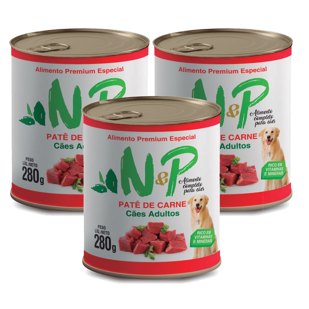 Kit 3 unidades Ração Úmida Patê de Carne N&P Premium Cães