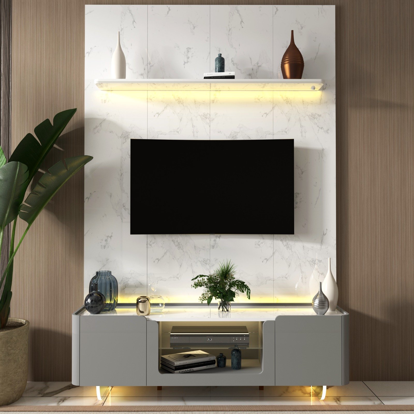 Rack com Painel para TV até 75 Polegadas 2 Portas com LED com Pés Vidro 180cm Splendore Yescasa