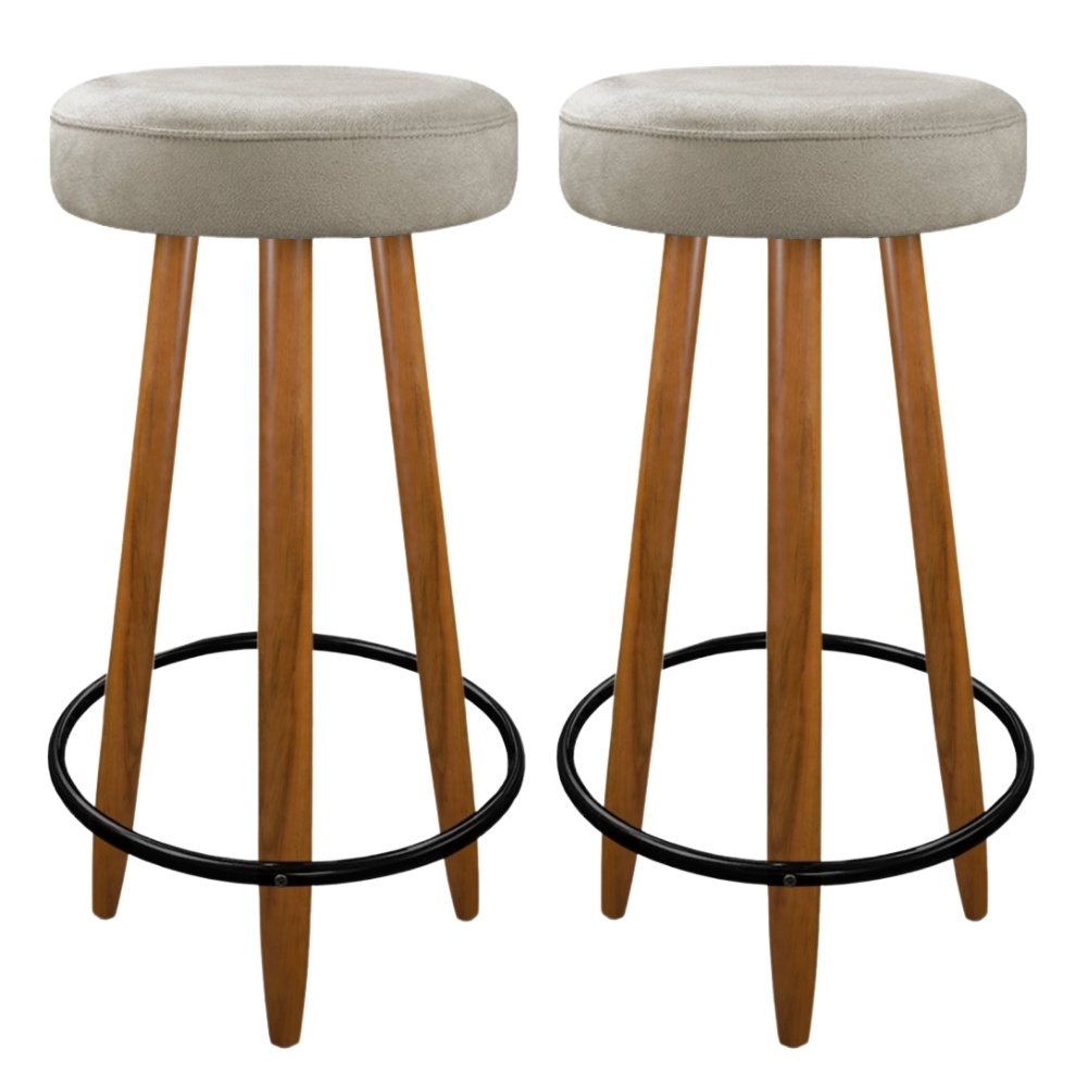 Kit 02 Banquetas Alta Cozinha Ilha Bancada Bar Bistro Madeira Camila 75cm Estofada Pés Palito