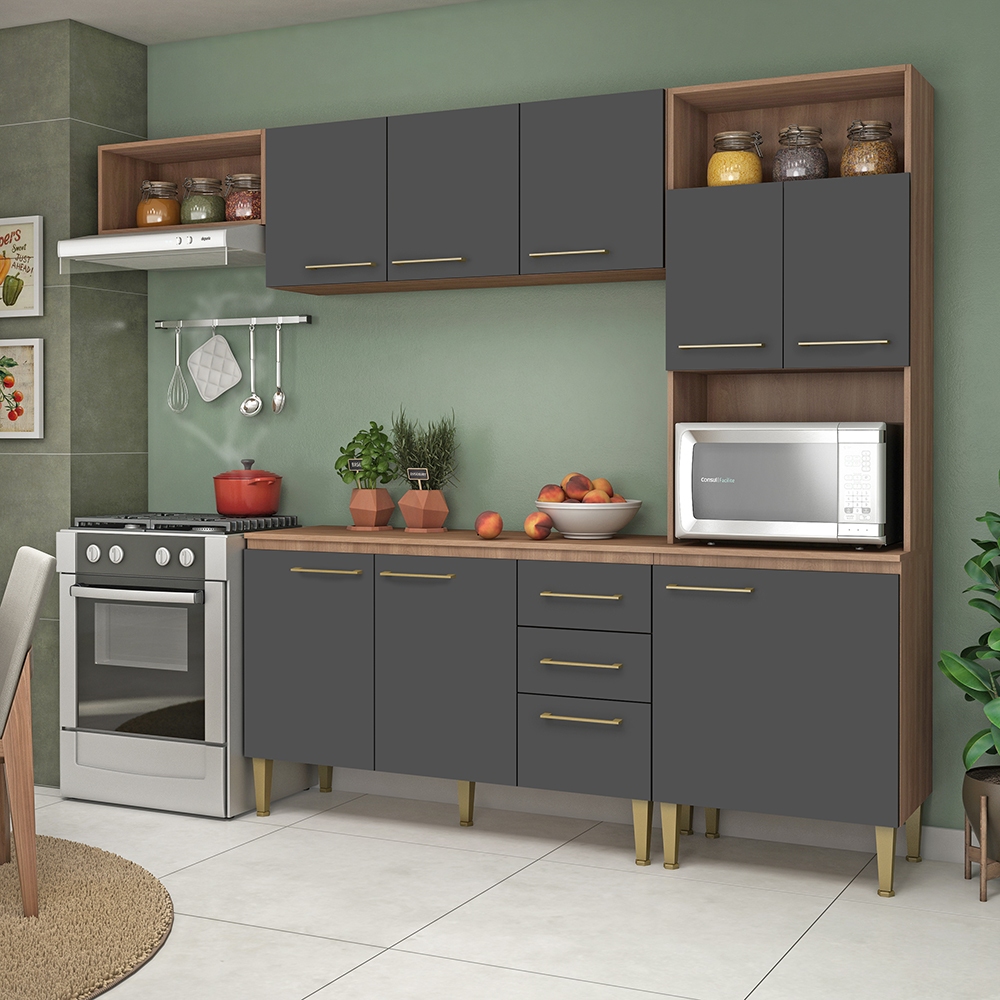 Armário De Cozinha Compacta 9 Portas 2,50m Versalhes Kit`s Paraná Freijo Cinza - Cinza