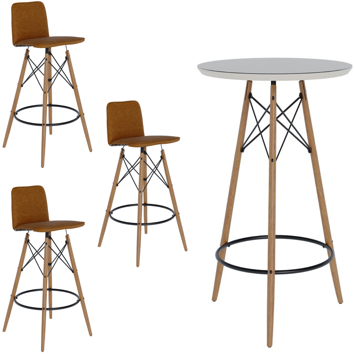 Conjunto Mesa Bistrô com Tampo de Vidro Temperado para Área Gourmet Cozinha Balcão com 3 Banquetas C