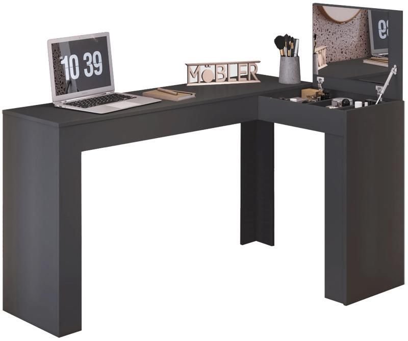 Escrivaninha de Canto Mobler Star com Penteadeira - Preto Fosco.