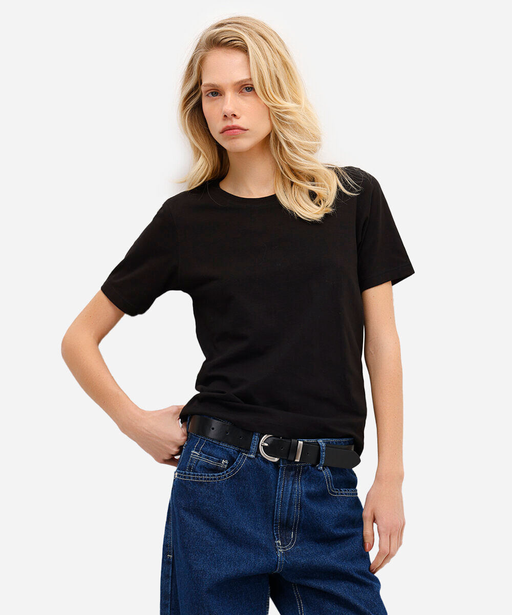 blusa básica feminina de algodão manga curta preta