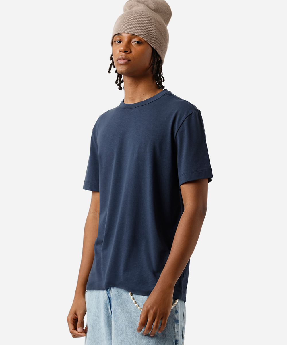 camiseta masculina com algodão peruano azul