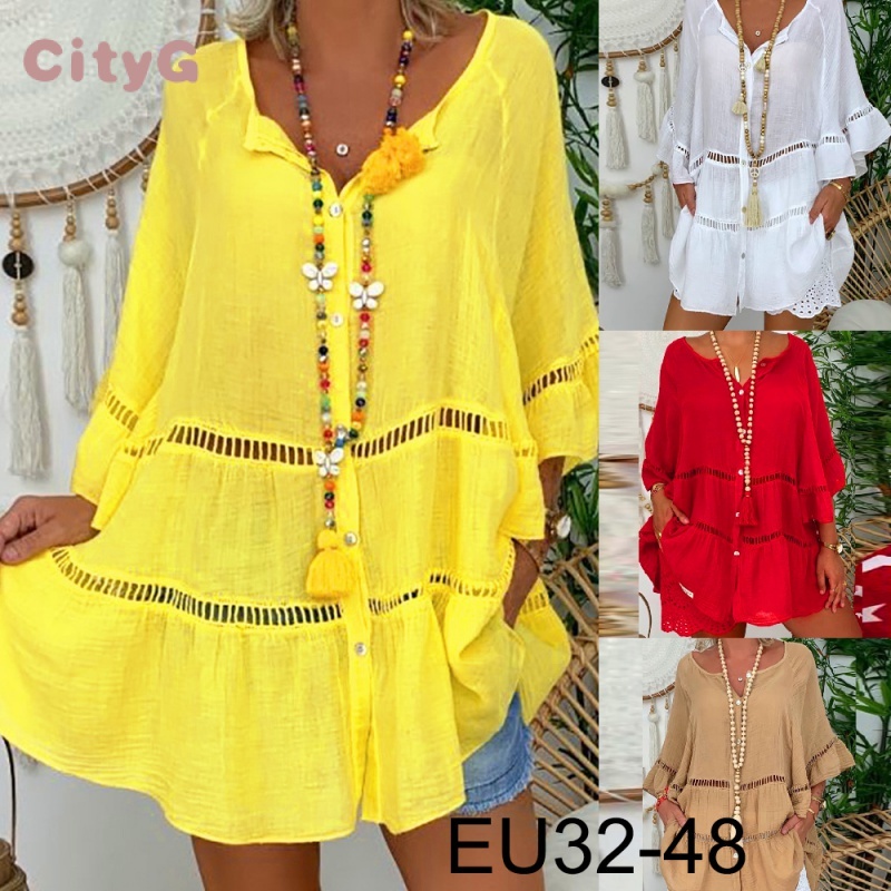 Camisa Saida Feminina Camisao com manga Praia Plus Size Vestido Curto blusas camiseta preto blogueira moda