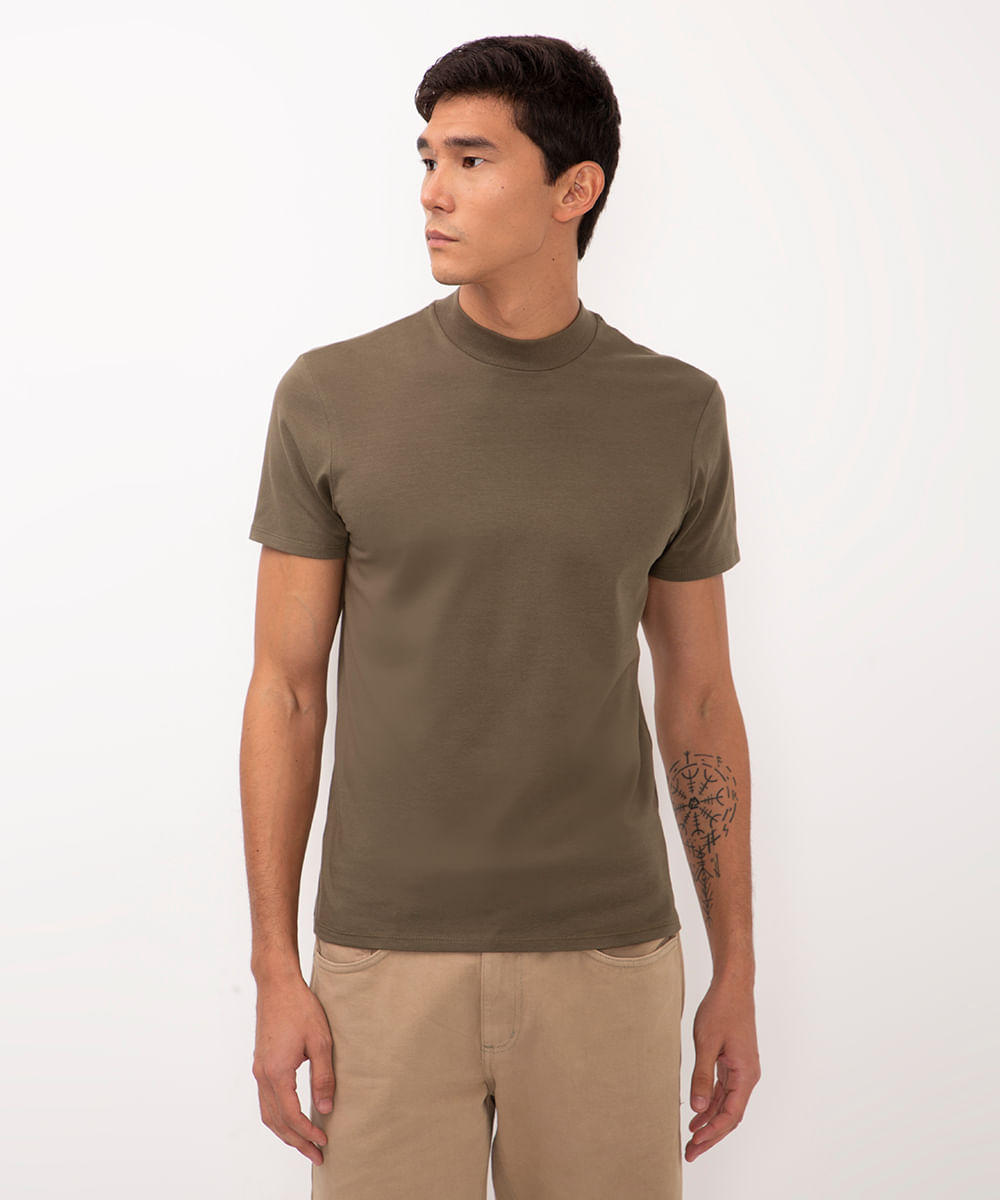 camiseta slim de algodão manga curta verde