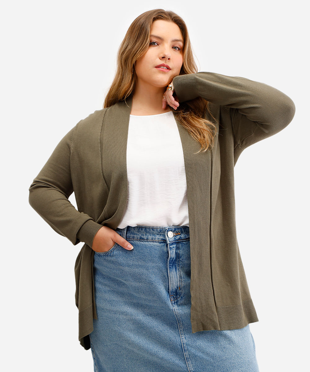 suéter capa de tricot plus size - verde escuro