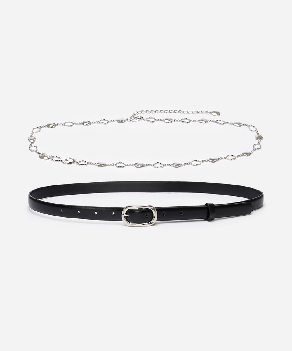 kit de 2 cintos fivela redondo e corrente multicor