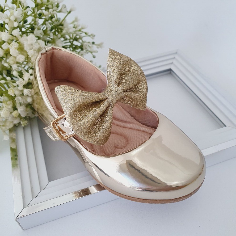 Sapatilha Infantil Feminina Confortável Dourada Com Laço Glitter 16 ao 34