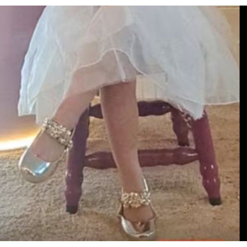 sapatilha infantil metalizada com laço e elástico dourada