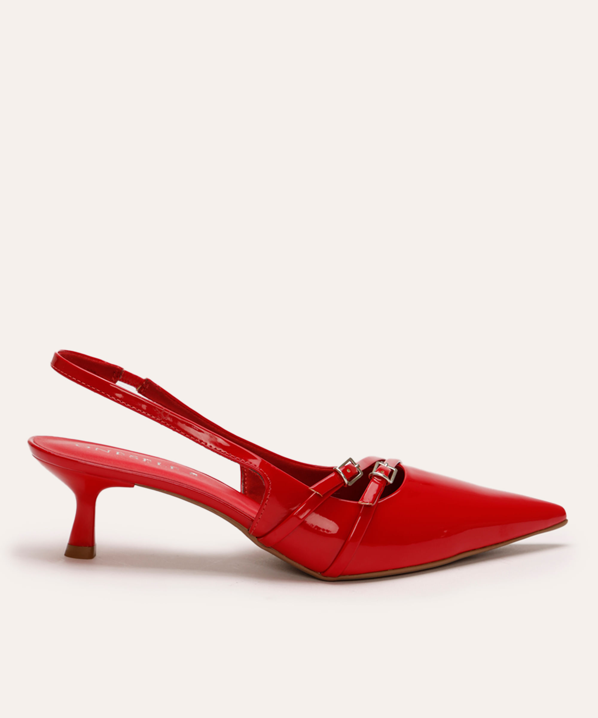 Scarpin Slingback Bico Fino com Salto Grosso de 6cm OFF-White, Preto, Caramelo,Nude