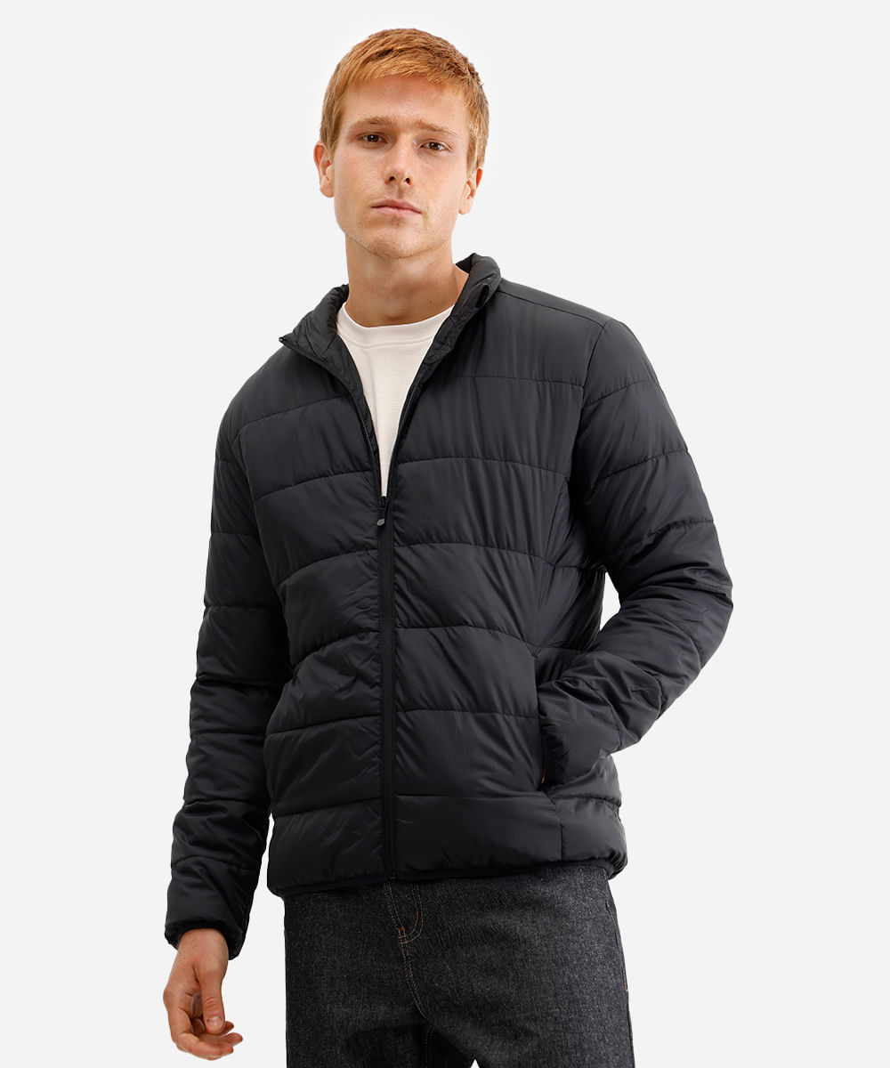 jaqueta puffer básica masculina manga longa preta
