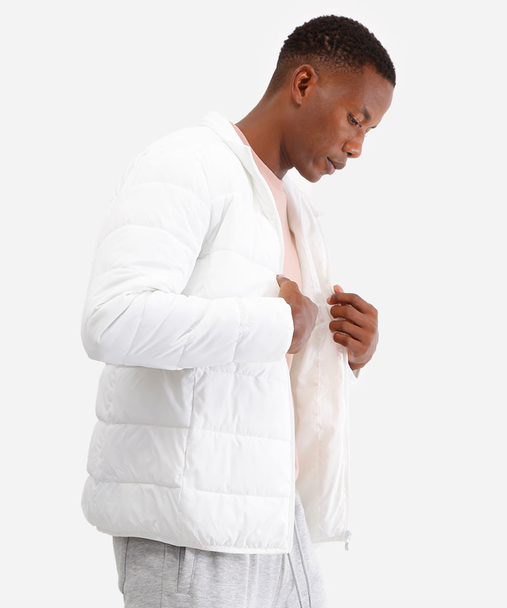 jaqueta puffer básica masculina manga longa off white