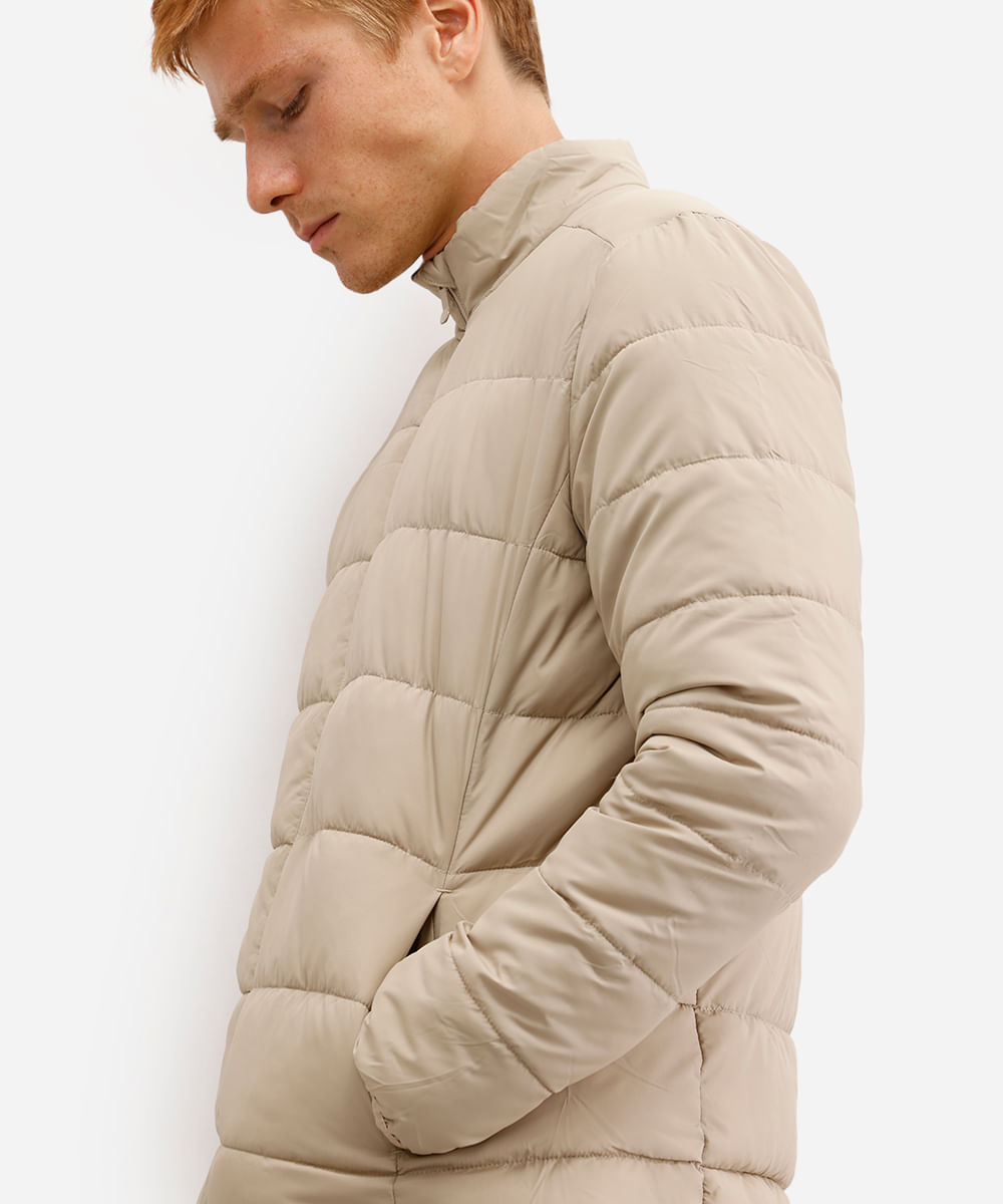 jaqueta puffer básica masculina manga longa bege