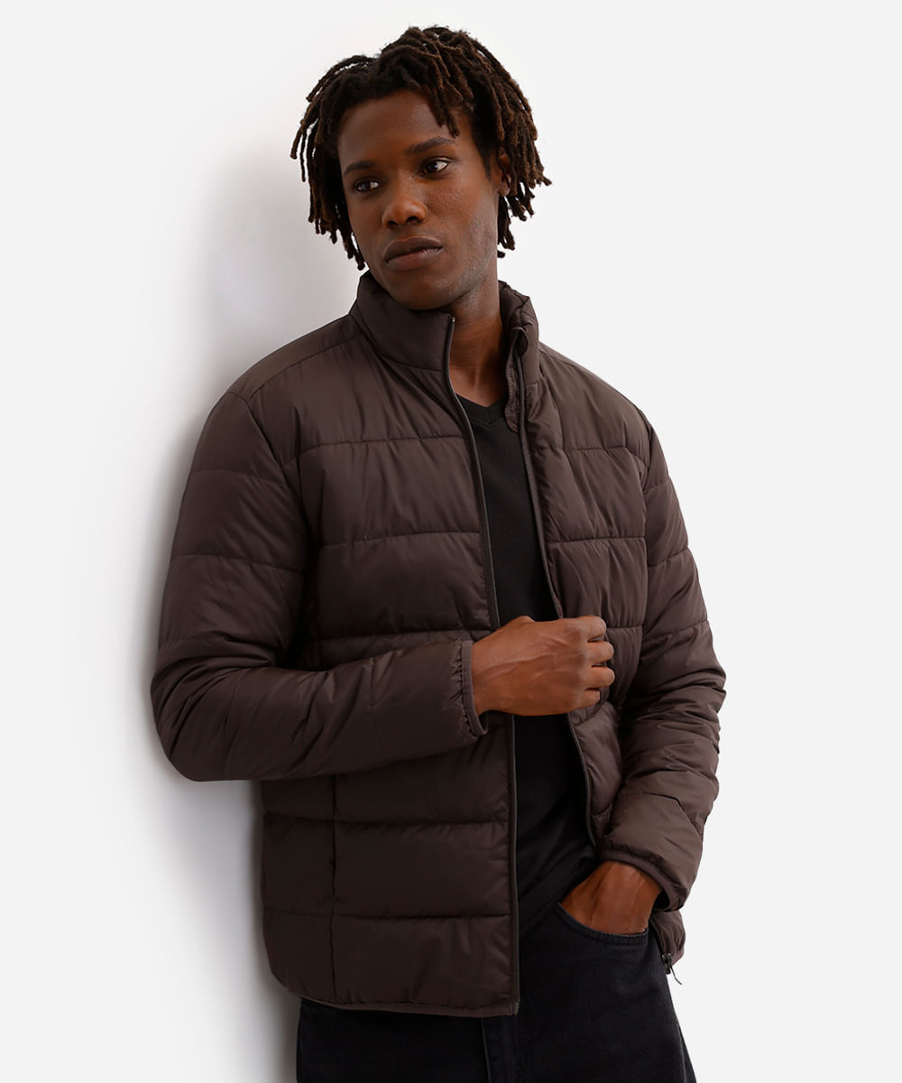 jaqueta puffer básica masculina manga longa marrom